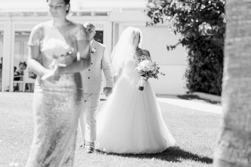 Walking down the aisle.